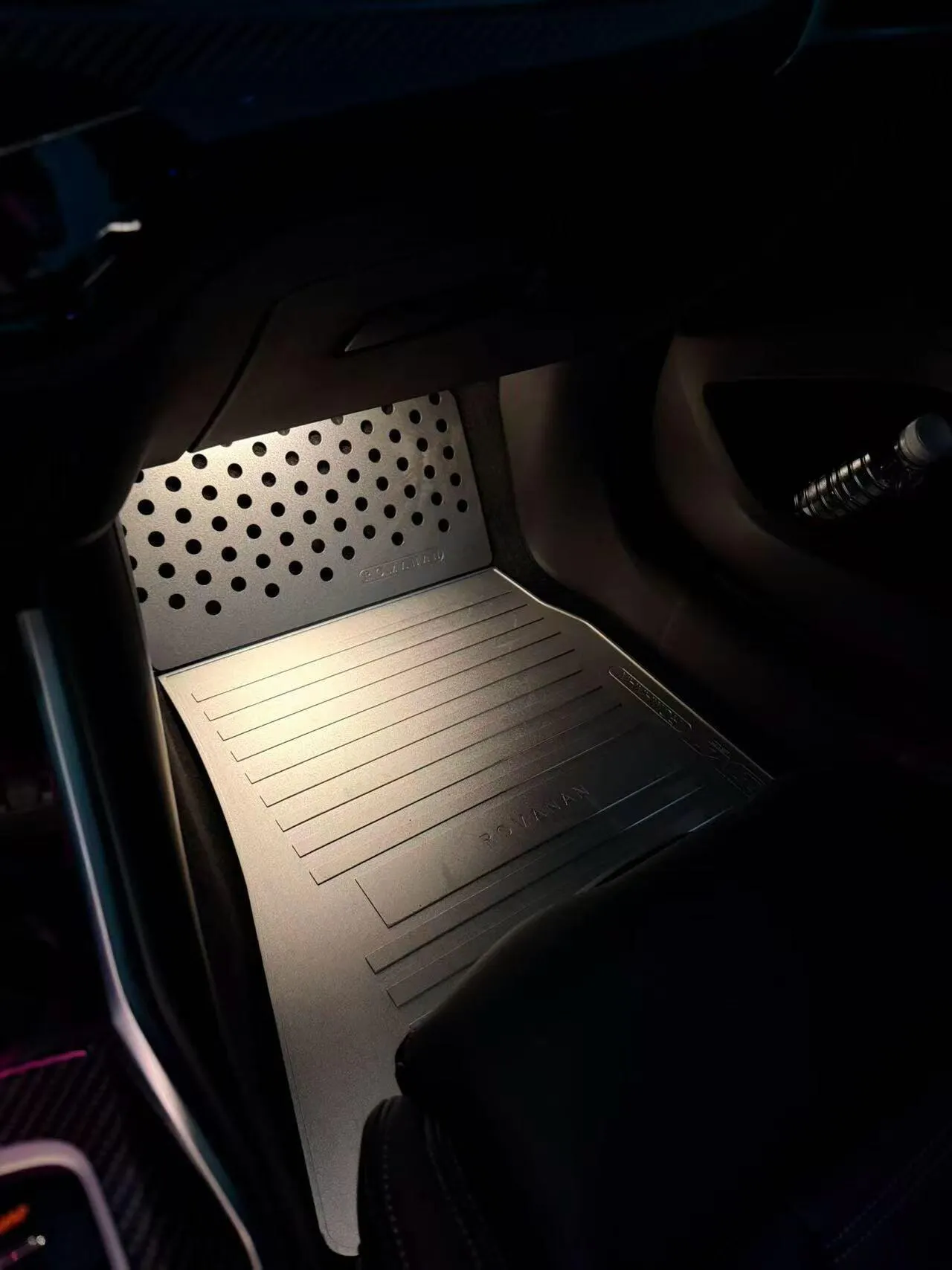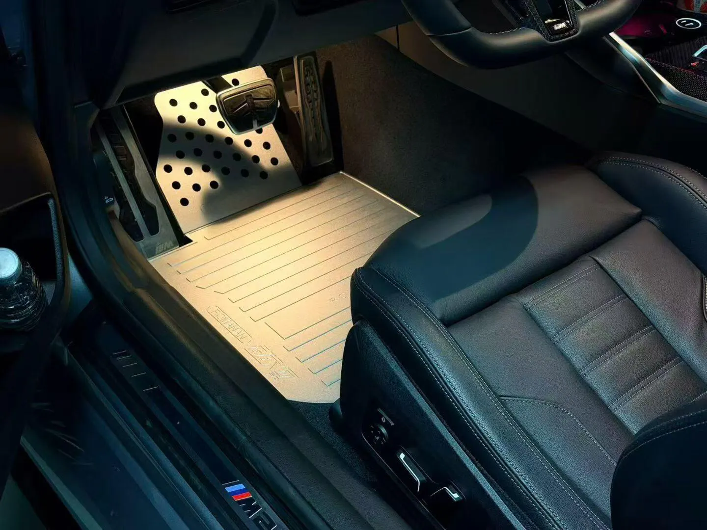 For G80 M3/G82 M4, a magnesium-aluminum alloy non-slip pedal set (accelerator, brake and footrest) that sharpens pedal feel and cabin sportiness — knurled/raised textures for grip even with wet soles.