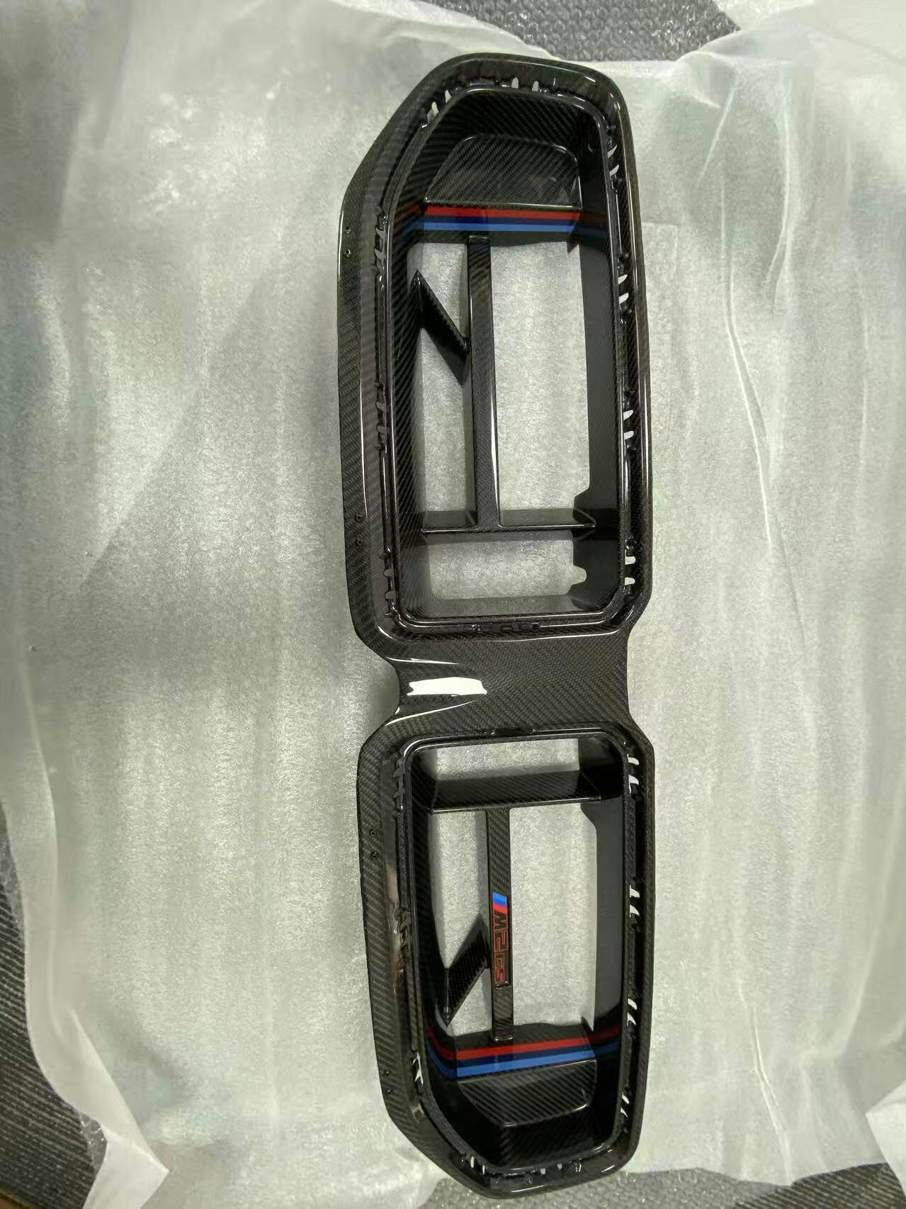 Fitment: G87 M2 (2023–present). Options: Mesh—No Mesh or High-Quality Metal Hexagonal Bug Mesh; Style—Basic or Colored stripe with OEM clips. Design: CS-style carbon grille that tightens the M2 front with an OEM-plus, motorsport tone while keeping sensor layout unchanged. Material/Finish: Pre-preg dry carbon sealed with a high-grade clear coat for mirror-like gloss and strong anti-yellowing. Install: OEM-geometry replacement, DIY-friendly with basic trim tools; no permanent body cutting. Note: Please leave your vehicle details and option choices in the order notes—we’ll double-check compatibility before dispatch.
